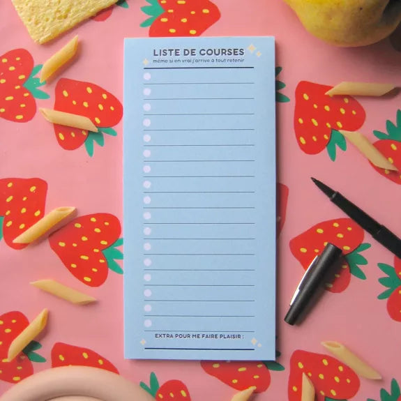 Son format DL est parfait pour organiser tes achats avec efficacité, tout en y glissant une pointe d’humour. Avec ses 50 pages détachables, tu ne rateras plus jamais rien au supermarché ou au marché !