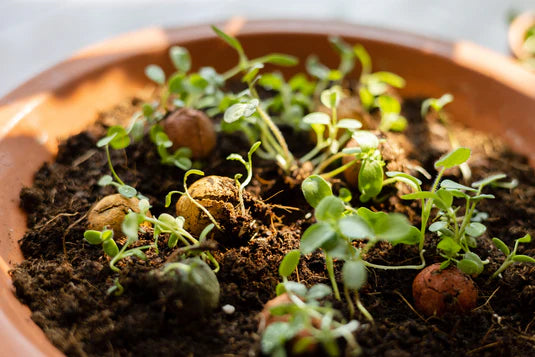 Fabriqué aux Pays-Bas avec des graines de fleurs sauvages biologiques et de l'argile, des nutriments et des pigments naturels.