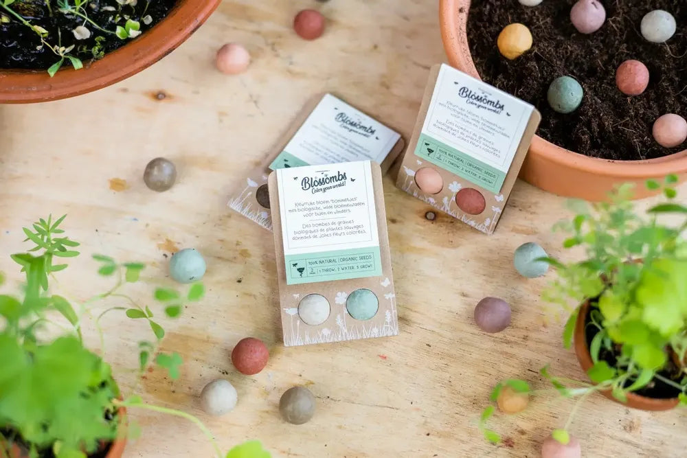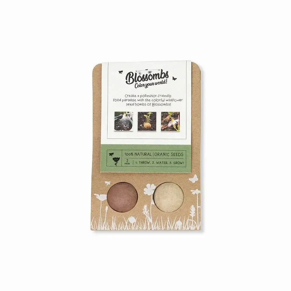 Avec les « bombes » de graines aux couleurs vives de Blossombs, vous créez une véritable mer de fleurs et un paradis alimentaire pour les abeilles et les papillons. Jetez les Blossombs partout où vous voulez des fleurs ; dans le jardin, sur le balcon ou sur un terrain vacant (Attention ! Les Blossombs ne peuvent pas être jetés dans les espaces naturels protégés.), attendre la pluie (ou utiliser un arrosoir) et au bout de quelques semaines vous, l'abeille et les papillons profiterez des fleurs les plus colorées !