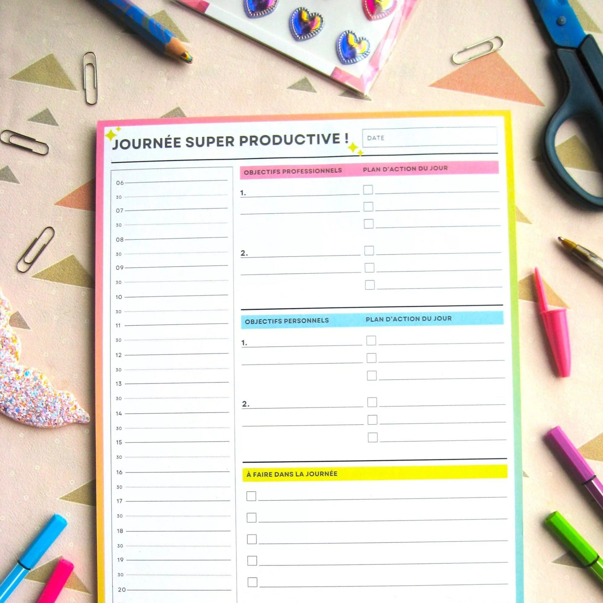 Envie d’un coup de pouce pour organiser tes journées et garder le cap sur tes objectifs ? Ce planificateur quotidien A4 est là pour toi ! Pensé spécialement pour les personnes avec TSA et TDAH, son design clair et coloré t’aide à mieux structurer tes tâches et rester concentré.e tout au long de la journée.